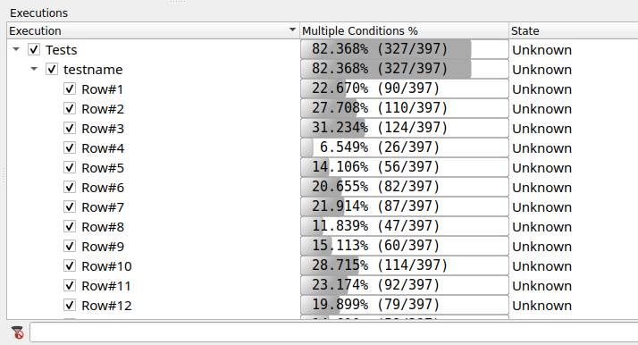 The executions now also have an execution state which identifies whether the test row has passed or failed, and whether that row is validated or not.