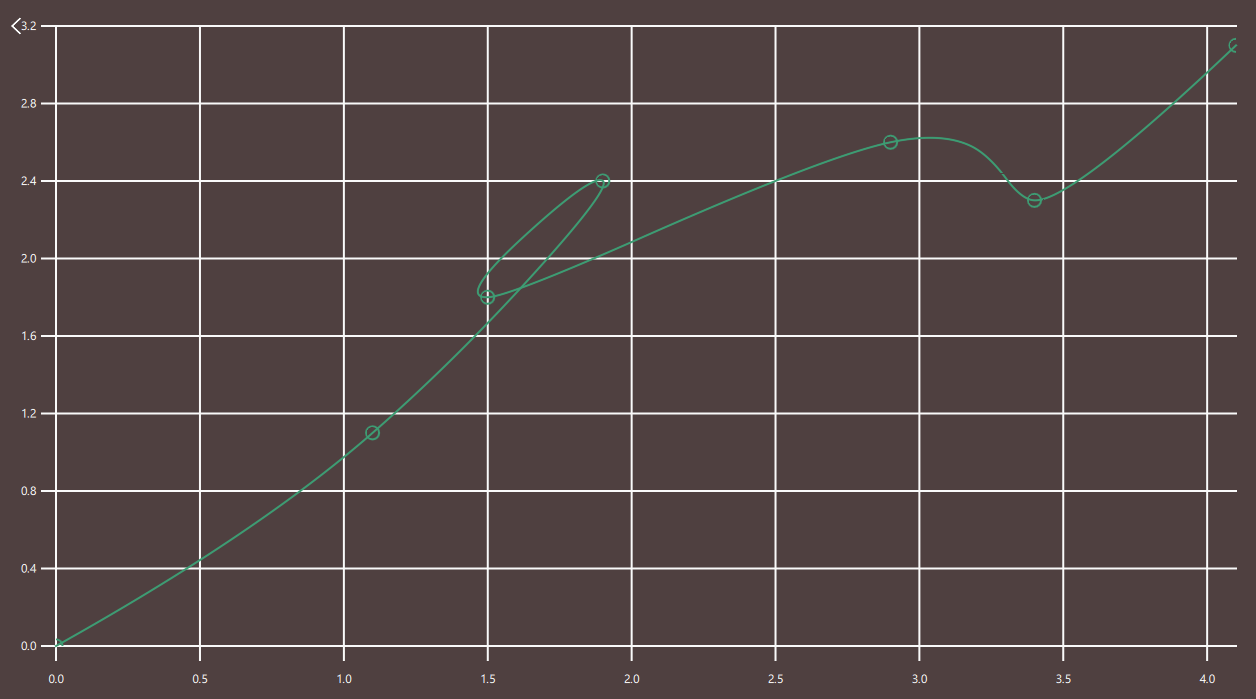 The graph displays smooth spline segments that moves through all the points defined in the graph.