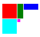 import QtQuick Grid { columns: 3 spacing: 2 Rectangle { color: "red"; width: 50; height: 50 } Rectangle { color: "green"; width: 20; height: 50 } Rectangle { color: "blue"; width: 50; height: 20 } Rectangle { color: "cyan"; width: 50; height: 50 } Rectangle { color: "magenta"; width: 10; height: 10 } }