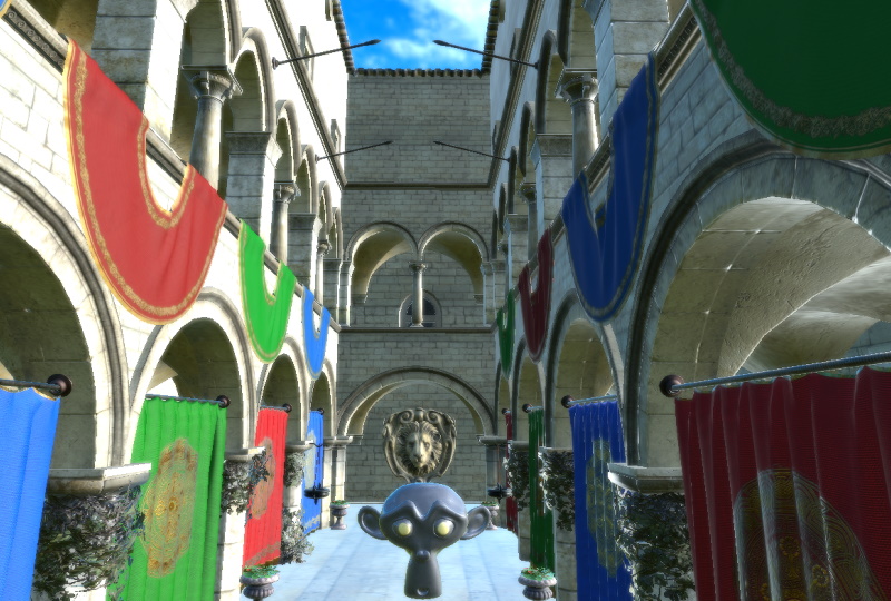 import QtQuick import QtQuick3D import QtQuick3D.Helpers Item { width: 1280 height: 720 View3D { id: v3d anchors.fill: parent environment: ExtendedSceneEnvironment { backgroundMode: SceneEnvironment.SkyBox lightProbe: Texture { source: "00455_OpenfootageNET_field_low.hdr" } tonemapMode: SceneEnvironment.TonemapModeFilmic sharpnessAmount: 0.4 glowEnabled: true glowStrength: 1.25 glowBloom: 0.25 glowBlendMode: ExtendedSceneEnvironment.GlowBlendMode.Additive } Node { scale: Qt.vector3d(100, 100, 100) Sponza { } Suzanne { y: 1 scale: Qt.vector3d(0.5, 0.5, 0.5) eulerRotation.y: -90 } } PerspectiveCamera { id: camera y: 100 } WasdController { controlledObject: camera } } }