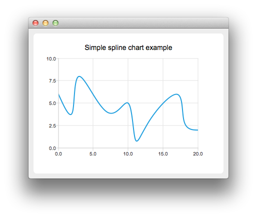 A spline chart is implemented by using the QSplineSeries class that inherits QLineSeries or the SplineSeries type that inherits LineSeries.