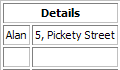 Original TableSuppose we have a 2x3 table of names and addresses. To merge both columns in the first row we invoke mergeCells() with row = 0, column = 0, numRows = 1 and numColumns = 2.