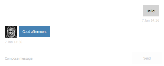 Pane { id: pane Layout.fillWidth: true Layout.fillHeight: false RowLayout { width: parent.width TextArea { id: messageField Layout.fillWidth: true placeholderText: qsTr("Compose message") wrapMode: TextArea.Wrap } Button { id: sendButton text: qsTr("Send") enabled: messageField.length > 0 Layout.fillWidth: false } } }