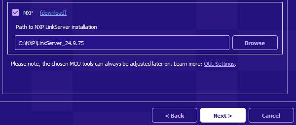 After you have downloaded and installed MCU LinkServer, you can then Browse to the Path to the NXP Linkserver installation from this installer page.