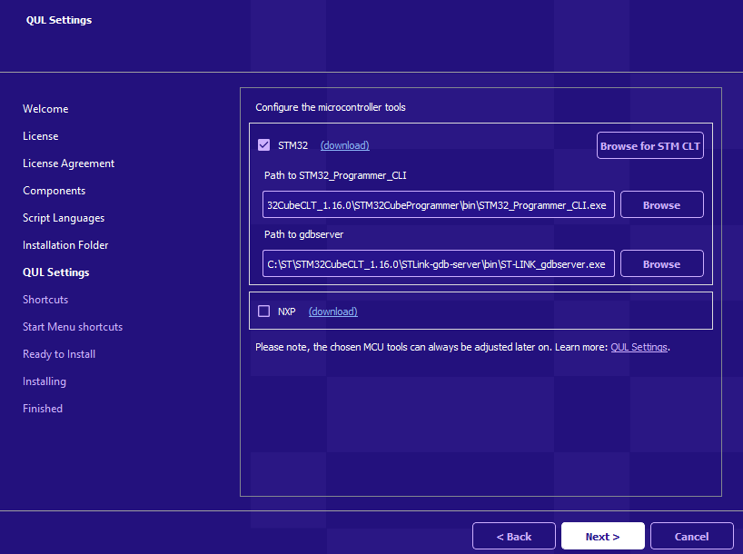 When you reach this screen, you can download and configure the location of MCU tools and drivers. The tools currently supported are for NXP and STM32 devices.