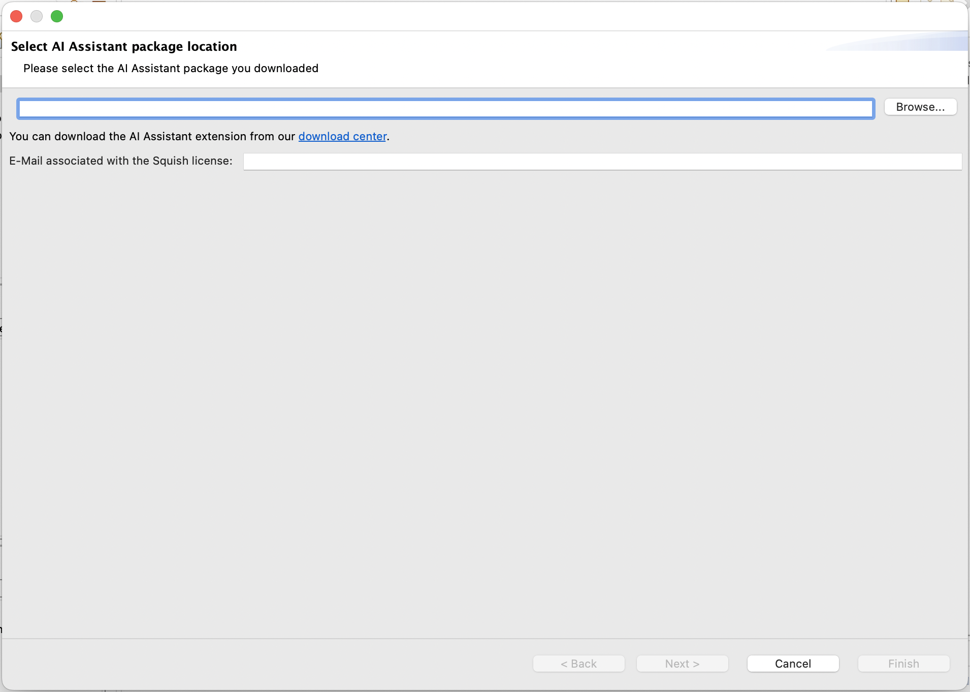 - Select Browse to open the file chooser dialog, and locate the Squish AI Assistant Extension