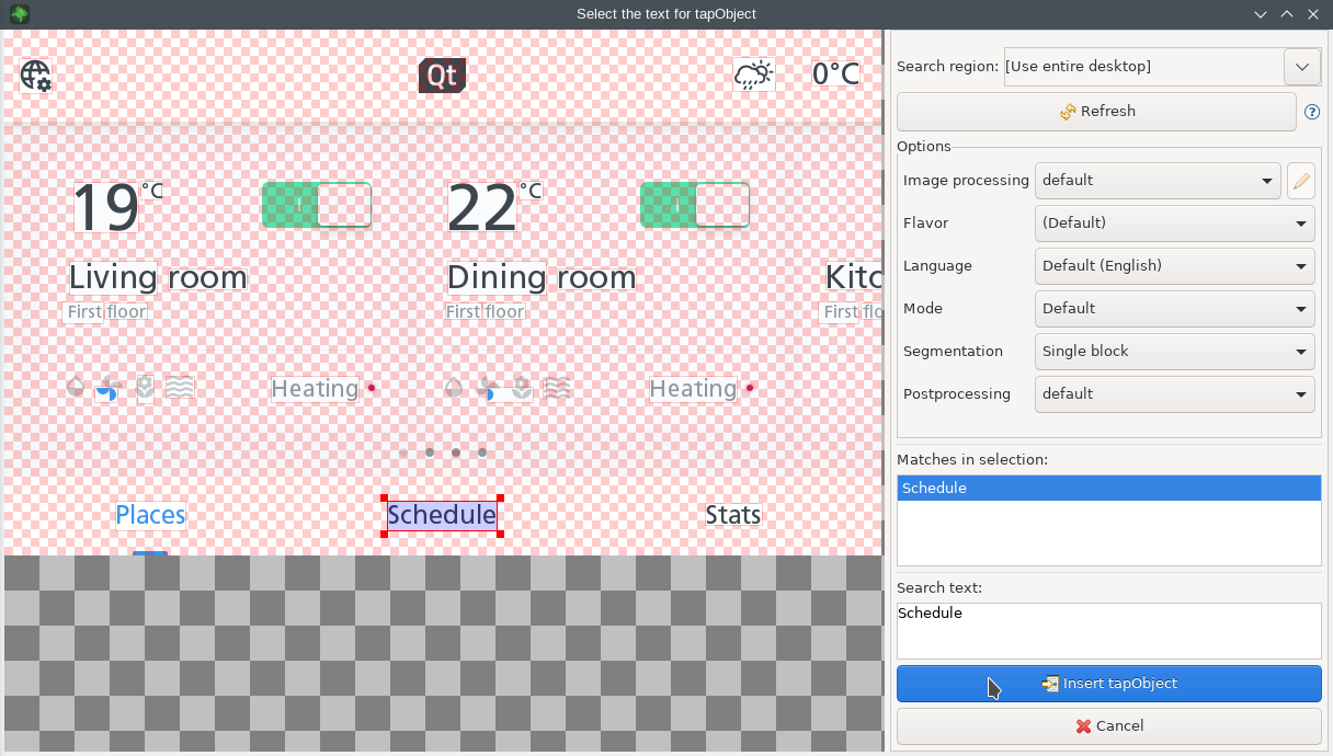 Adjust the rectangular area you wish to capture and enter a good Name: for it. Choose Insert TapObject and you will see the Control Bar again.