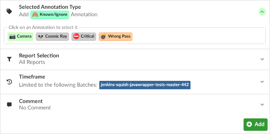 Annotations are a way to mark and comment on test results. You can filter tests by annotations, they are tracked in the statistical view of the History, and they can override results. Annotations are very versatile and customizable, so you have much freedom in how exactly you want to use them.