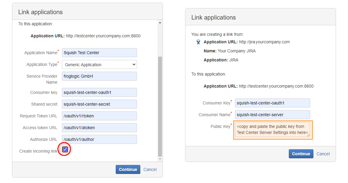 To finish the setup process, click Continue. Your JIRA instance should now be set up to allow OAuth authentication from Test Center.