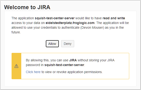 Then click Link to JIRA to authenticate with your JIRA instance. Test Center redirects you to JIRA where you can log in with the JIRA account that you want to link to your Test Center account. Grant Test Center read and write access by clicking the Allow button.