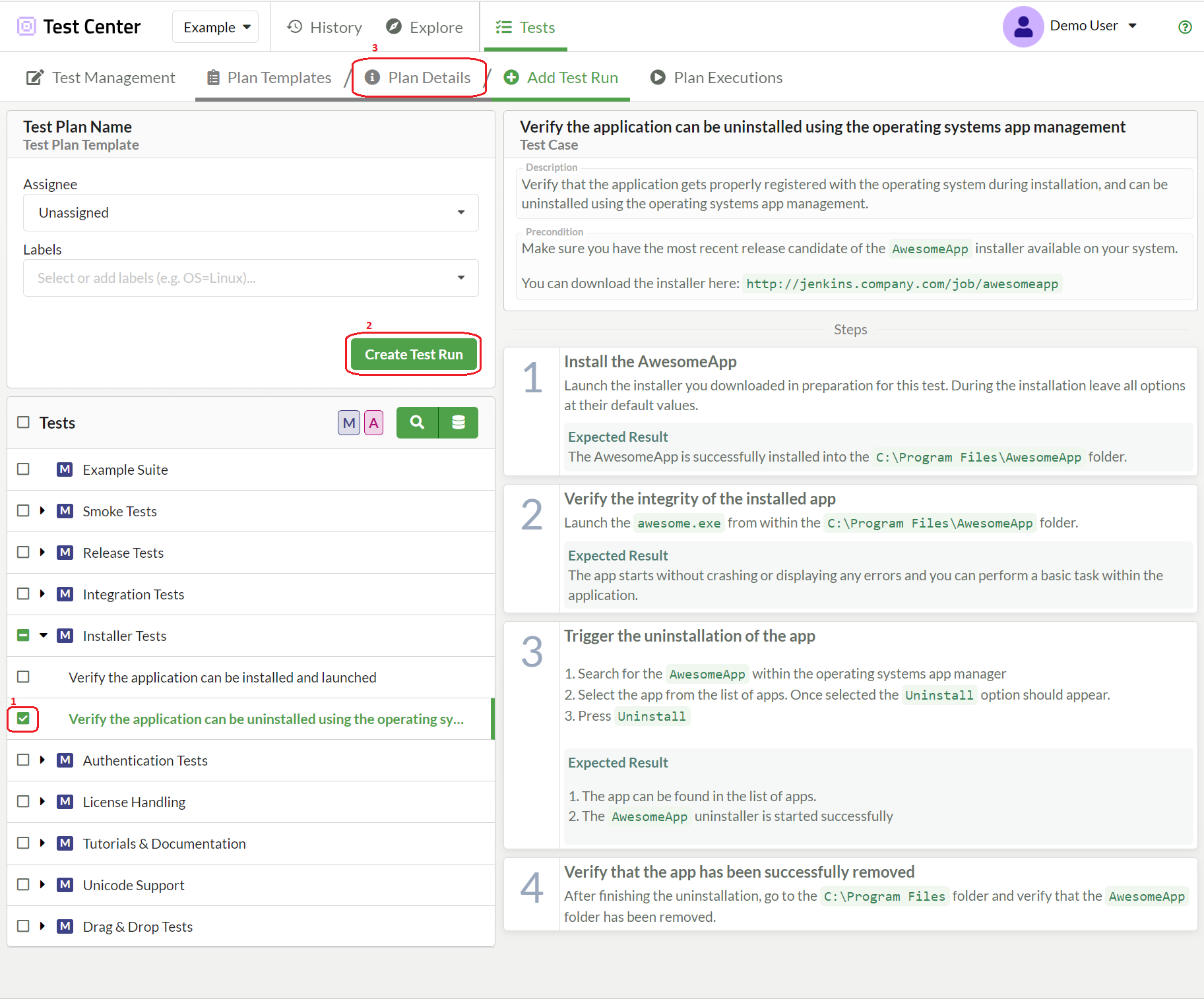 Add a test run to your Test Plan