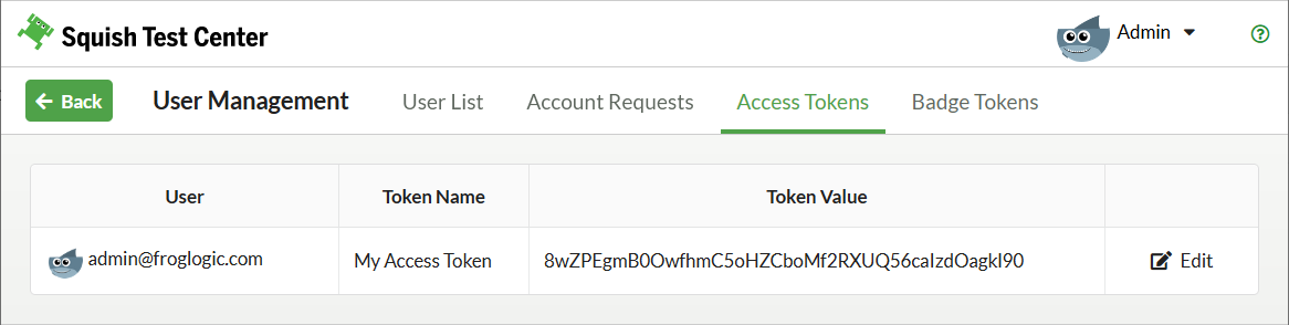 Administrators can create and manage badge tokens in User Management > Badge Tokens.